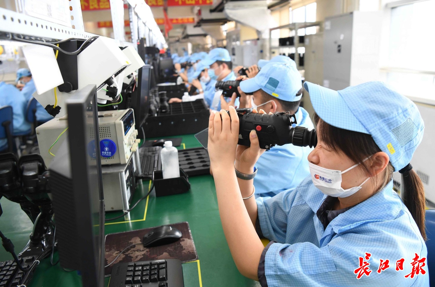 高德红外智感科技制造部一派繁忙景象,技术人员在生产线上检测产品