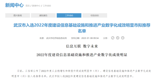 近日,国家工信部公布了2022年度工业稳增长和转型升级成效明显市(州)、建设信息基础设施和推进产业数字化成效明显市(州)拟入选推荐名单,武汉市拟入选2022年度建设信息基础设施和推进产业数字化成效明显市。