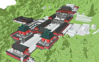 关于五龙宫的历史文献十分丰富,包括碑刻、绘画、文章及历代山志等。五龙宫考古团队及武汉大学复原团队仔细比对反映五龙宫空间格局的舆图,比较武当山现存明代建筑及全国现存的其他明代中早期皇家敕建建筑,对照中国古代建筑营造典籍,结合遗址出土的建筑及构件细节,最终完成三维建模。