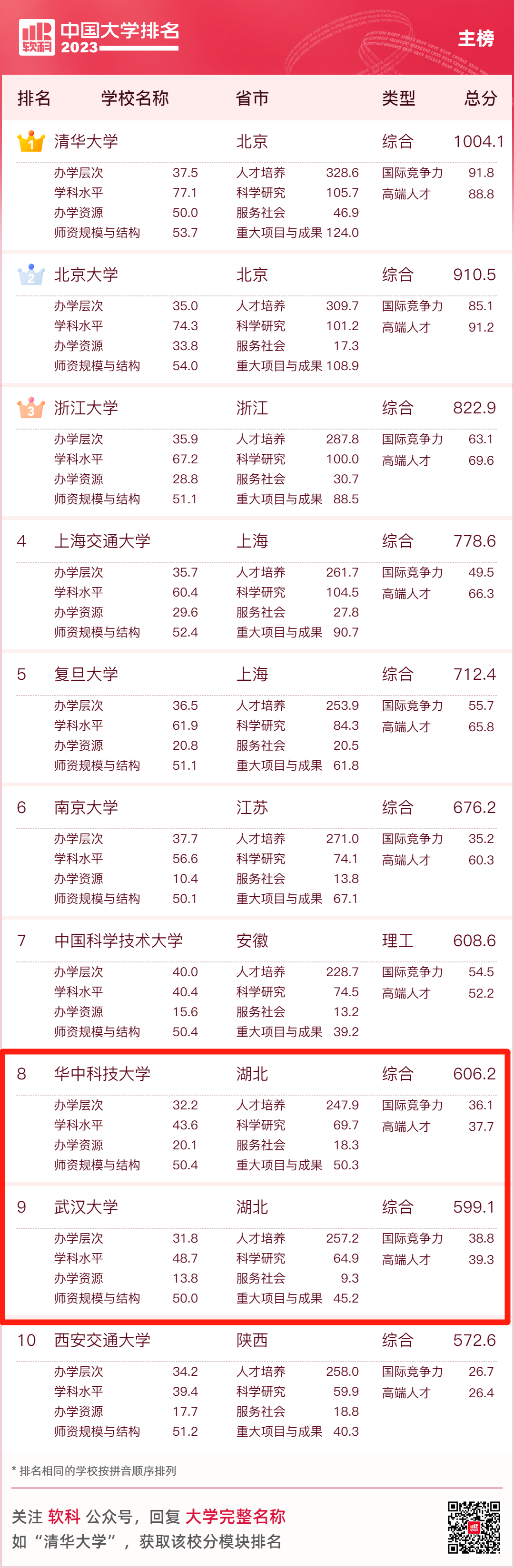 我国内地高校中,北京大学总上榜学科数量最多,共有43个,浙江大学共有38个,清华大学共有37个,总上榜学科数位列前三席。复旦大学有36个学科上榜,武汉大学、南京大学和中山大学各有35个。