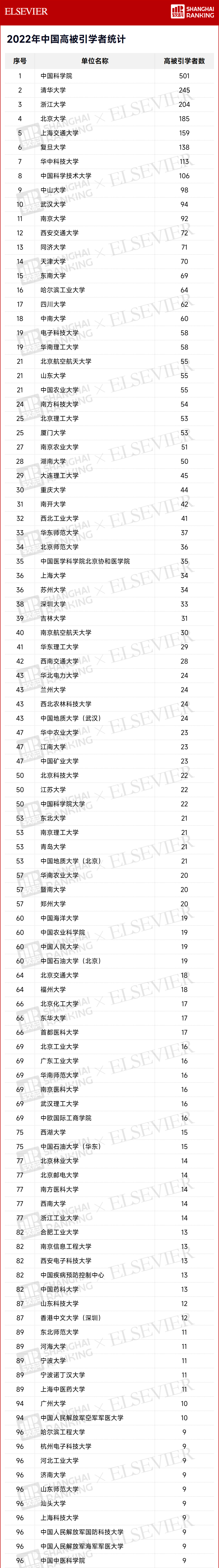 据悉,2022爱思唯尔“中国高被引学者”榜单以全球领先的引文与索引数据库Scopus作为统计来源,采用了上海软科教育信息咨询有限公司开发的方法,分析中国学者的科研成果表现。