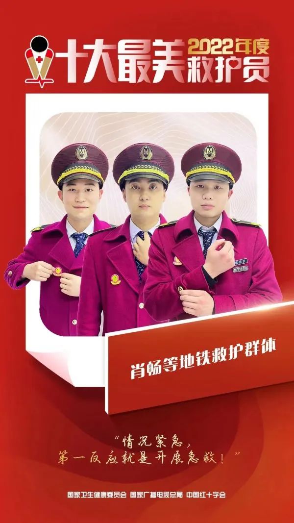 肖畅(中)、夏阳(右)、徐聪(左)获得“十大最美救护员”。海报来自中国红十字会官方微信公众号