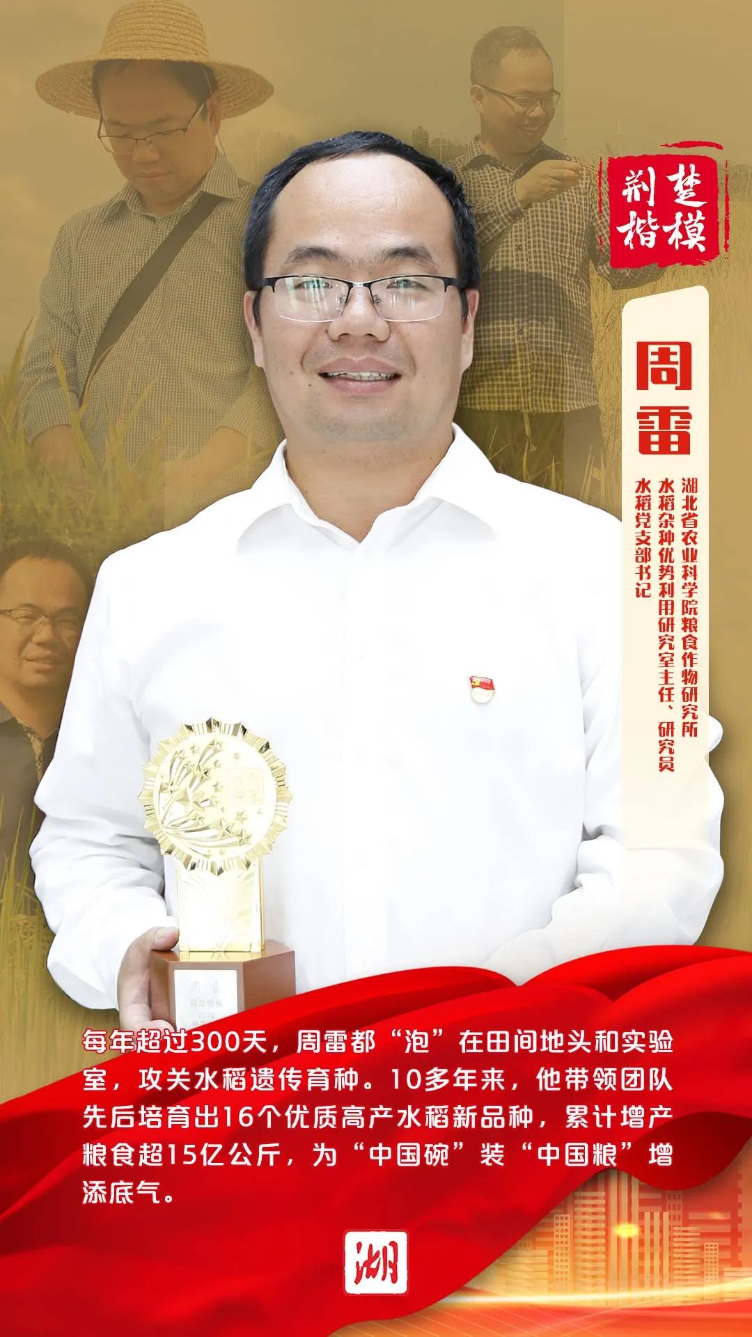 周 雷 湖北省农业科学院粮食作物研究所水稻杂种优势利用研究室主任、研究员,水稻党支部书记