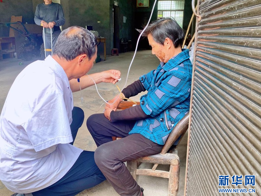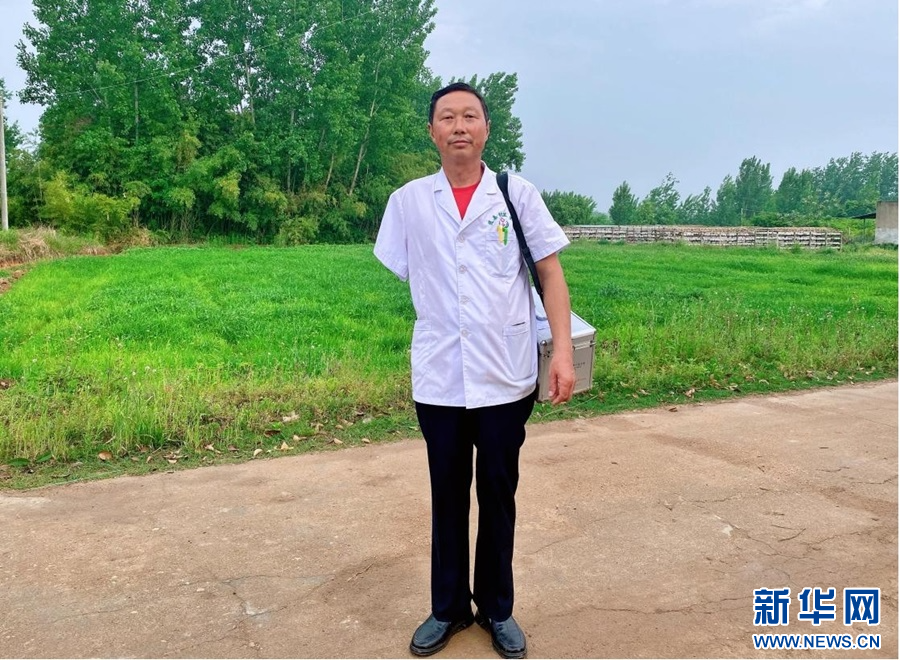 新华网武汉5月14日电(刘桔、陈凯、常梦星)暮春时节,湖北随县厉山镇东方村,天空下着淅沥沥小雨。王文艮单手骑着电动车,挎着医药箱,疾驰在乡村小路。