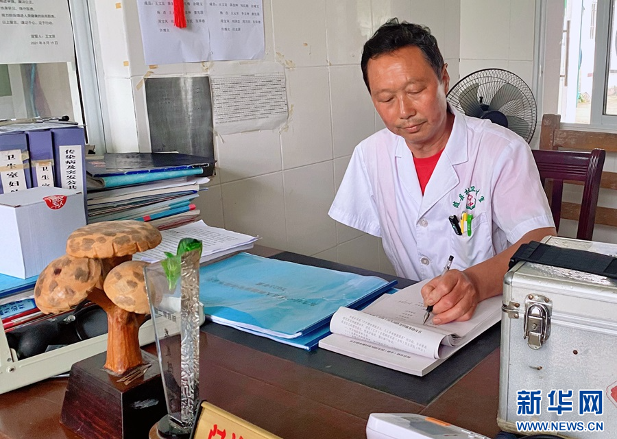 图为王文艮在东方村卫生室。新华网 刘桔摄