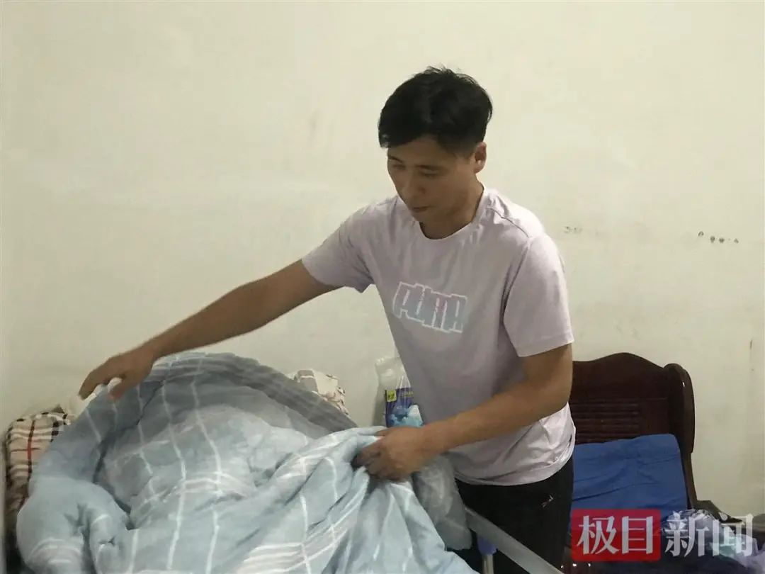 王坤每隔几个小时就要为王明会查血压、量体温、翻身、拍背、换洗、整理床铺、按摩……几乎没有睡过整觉,“他躺在床上不会表达,必须要随时看有没有出现状况。”王坤说,有一次父亲突发高烧,但外表看着很正常,他一摸发现不对劲,赶紧打车送医,像这样的情况已是常态。王坤连睡梦中都要保持精神高度紧张、随时待命。