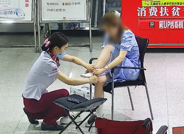 一位女乘客突然崴伤脚踝,