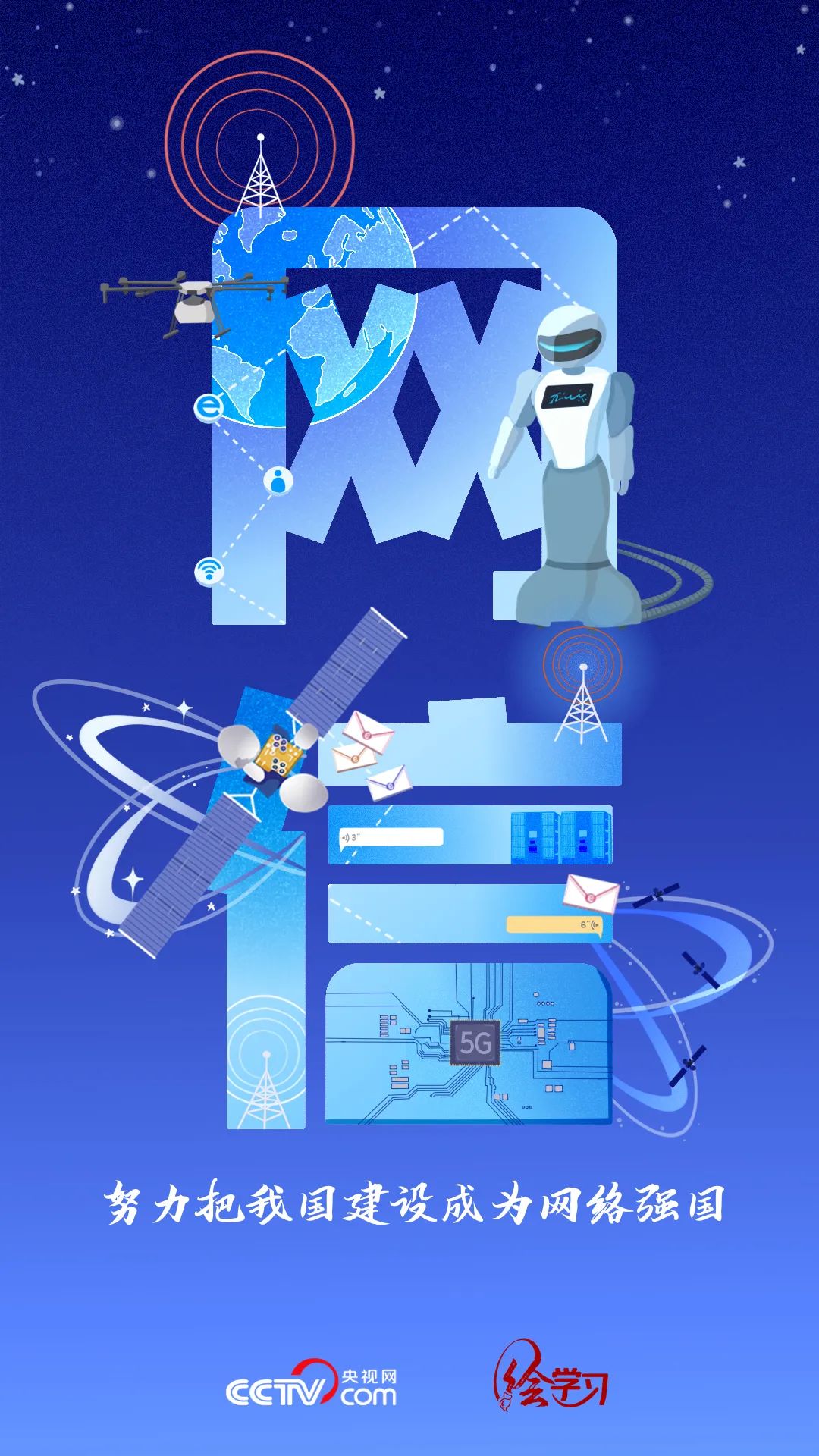 2017年,“网络强国”被写入党的十九大报告,并作出明确部署:“推动互联网、大数据、人工智能和实体经济深度融合”“加强互联网内容建设,建立网络综合治理体系,营造清朗的网络空间”“善于运用互联网技术和信息化手段开展工作”……