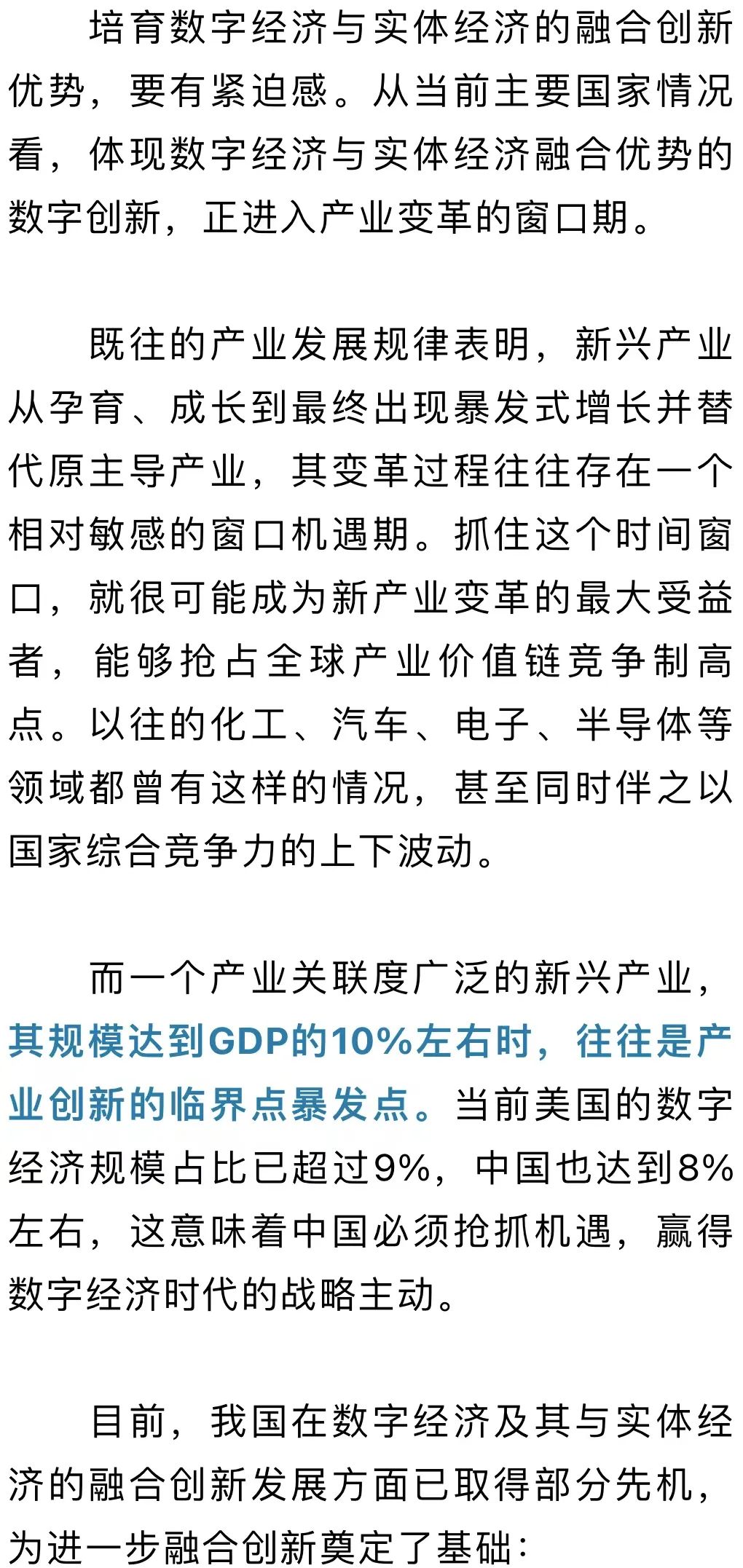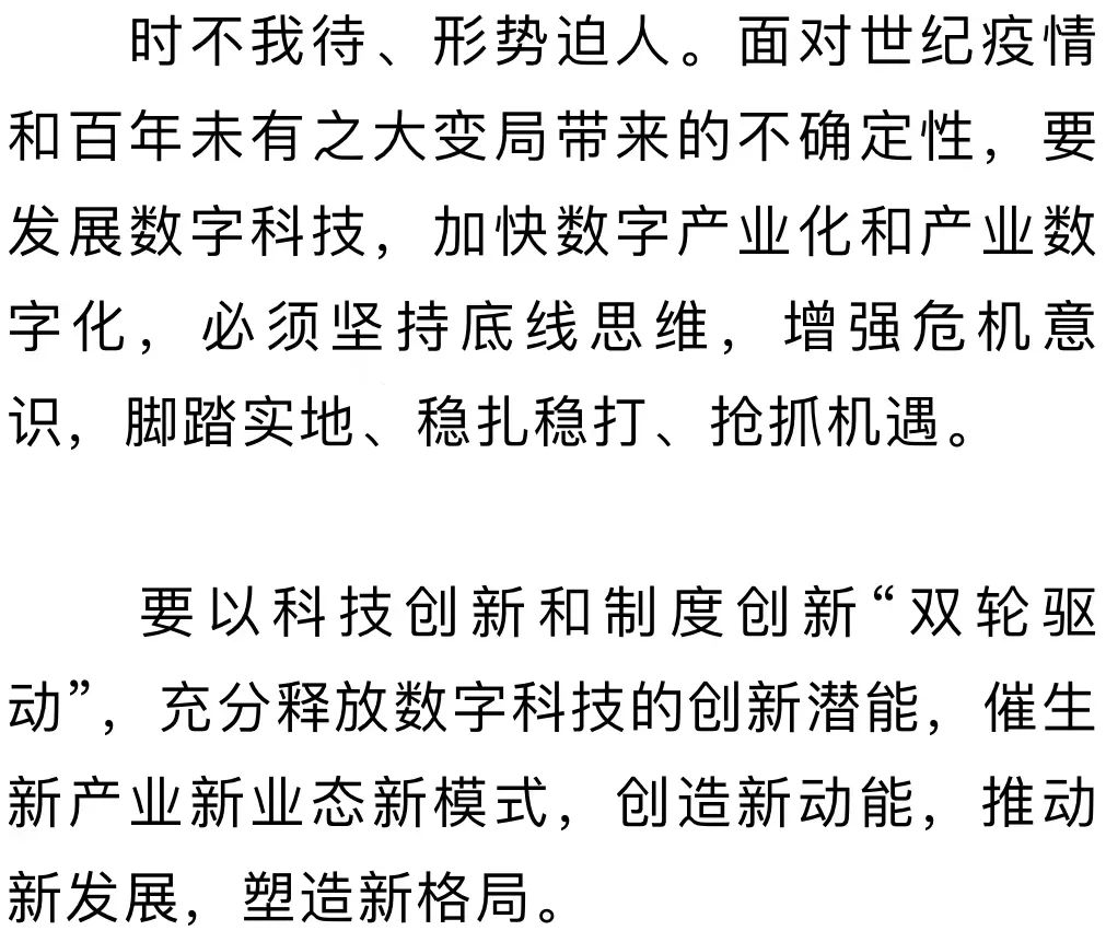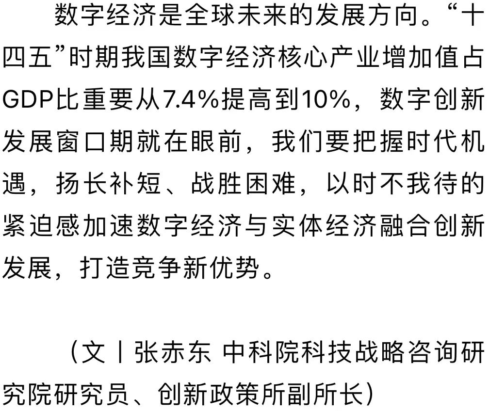 ◇培育数字经济与实体经济的融合创新优势,要有紧迫感◇从当前主要国家情况看,体现数字经济与实体经济融合优势的数字创新,正进入产业变革的窗口期◇要以科技创新和制度创新“双轮驱动”,充分释放数字科技的创新潜能,催生新产业新业态新模式,创造新动能,推动新发展,塑造新格局