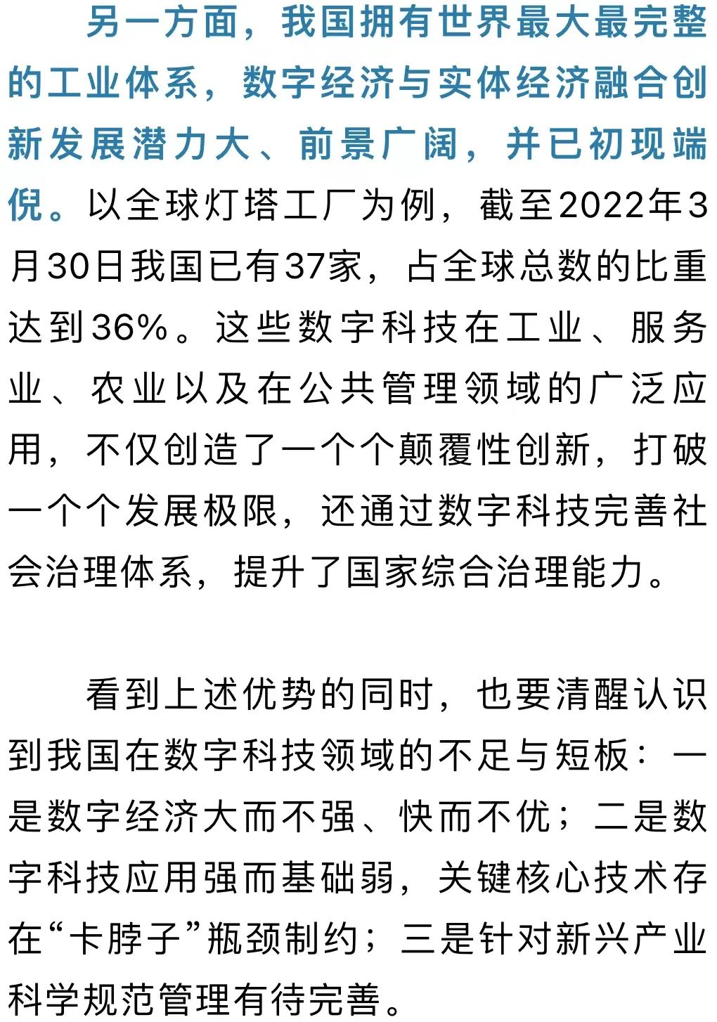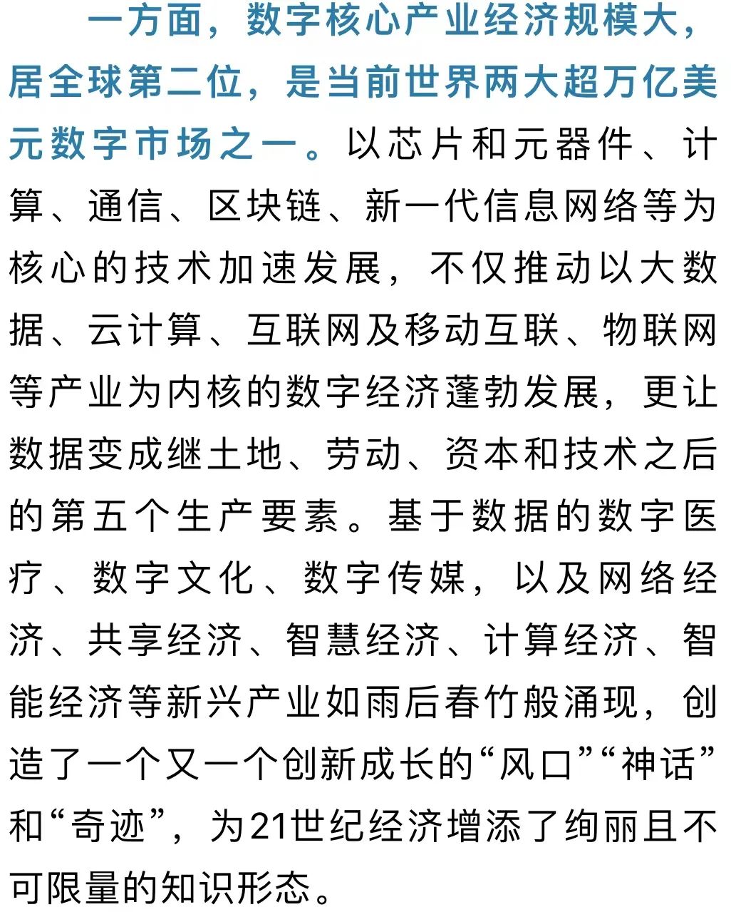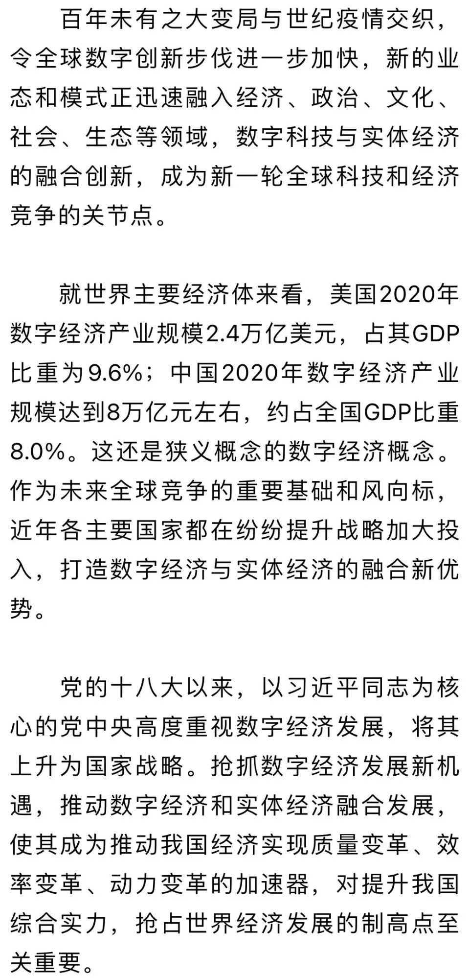 ◇培育数字经济与实体经济的融合创新优势,要有紧迫感◇从当前主要国家情况看,体现数字经济与实体经济融合优势的数字创新,正进入产业变革的窗口期◇要以科技创新和制度创新“双轮驱动”,充分释放数字科技的创新潜能,催生新产业新业态新模式,创造新动能,推动新发展,塑造新格局