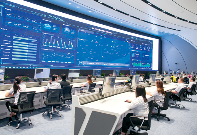 2020年7月4日,江苏省南通市海门区,工作人员正在对传来的无人机画面进行实时监控,提升城市治理“一站式”指挥调度。