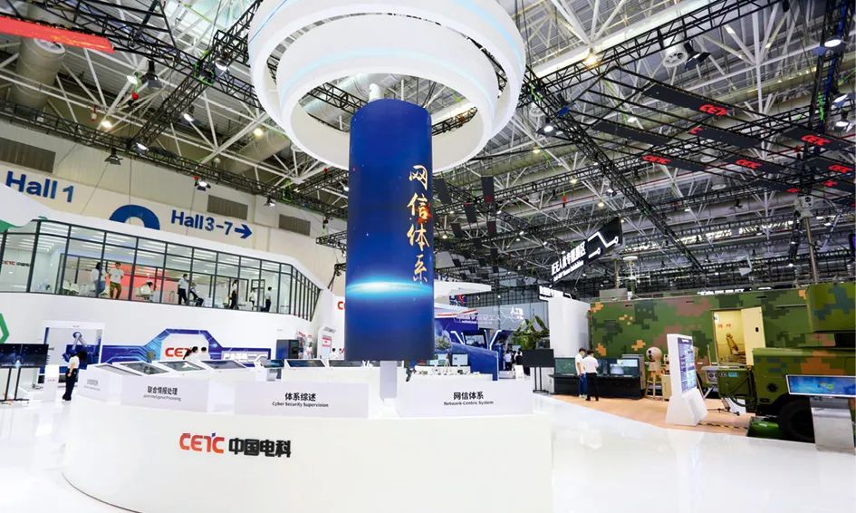2021年9月28日~10月3日,第十三届中国国际航空航天博览会在广东省珠海市举办,图为中国电科“网信体系”展台。