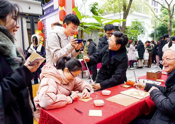 2020年12月19日,在浙江省温州市鹿城区蒲鞋市街道浙江创意园举办的“瓯韵新生·非遗传承”文创市集活动中,网络名人发挥网上价值观引领作用,开展中国文化网上宣传,在直播中向网友介绍竹丝镶嵌非遗手工技艺。