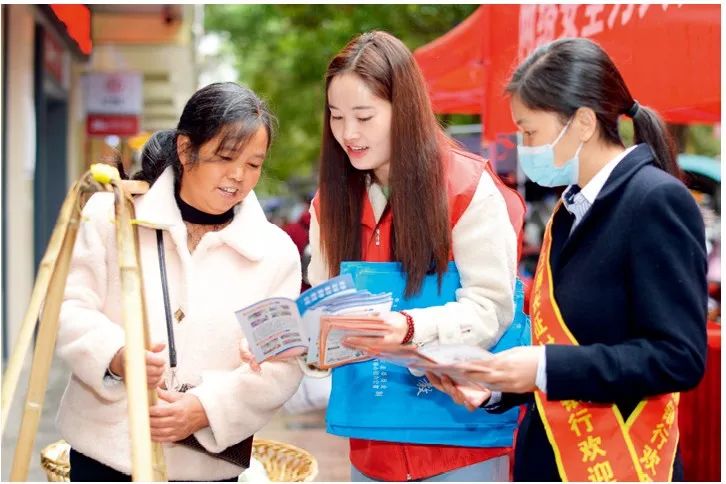2021年10月16日,在贵州省铜仁市玉屏侗族自治县街头,工作人员向一位市民宣讲网络安全和防范网络诈骗的知识。