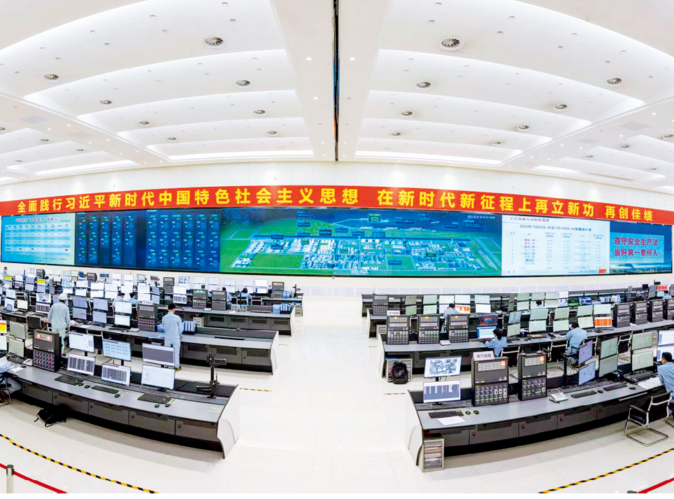 中科炼化公司按照炼化工程与智能工厂一体化设计、模块化建造、数字化交付新模式建成了新一代智能工厂。图为该公司生产运营集中管控中心。