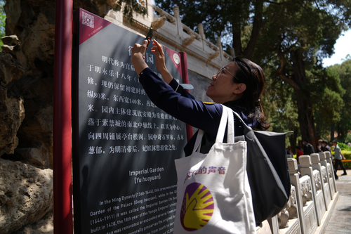 一名女士在扫手语讲解视频的二维码。新华社记者 彭子洋 摄