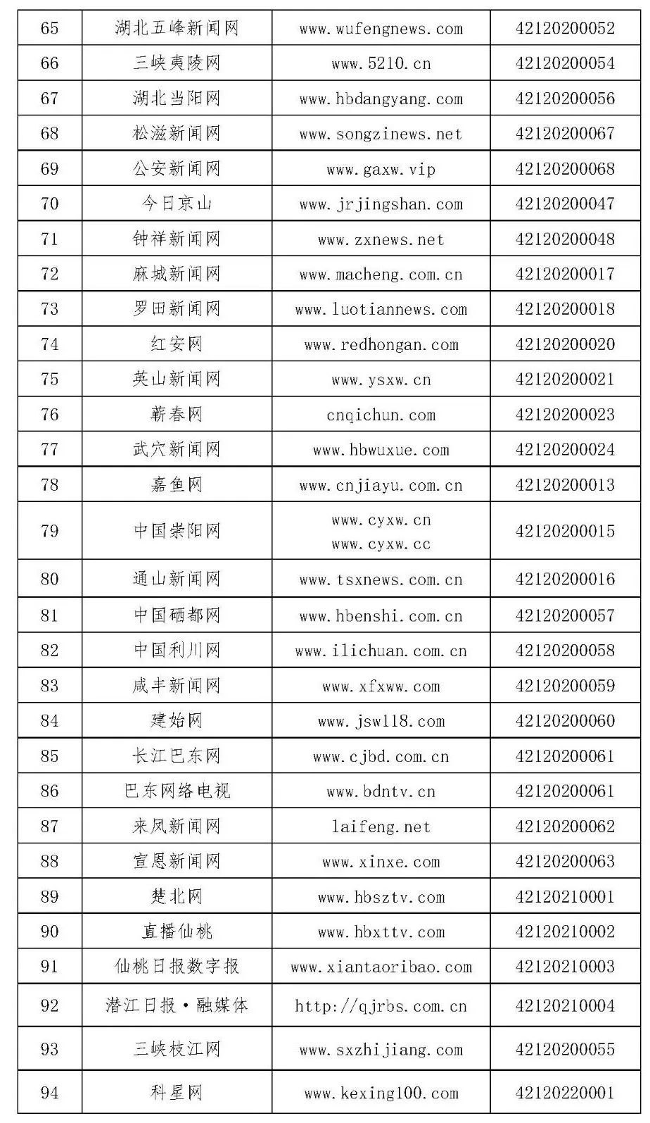 湖北省互联网新闻信息服务单位信息(截至2022年12月30日)