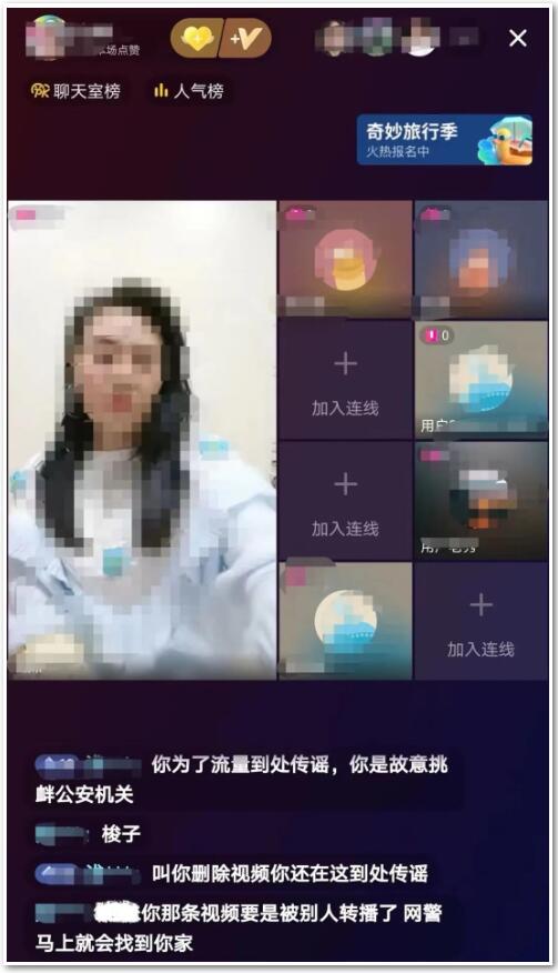 就在网安民警展开调查时,该网民还开启了视频直播,在直播间进行粉丝连麦。不少网民识破了她凭空捏造、张口就来的“善意提醒”,留言提醒。