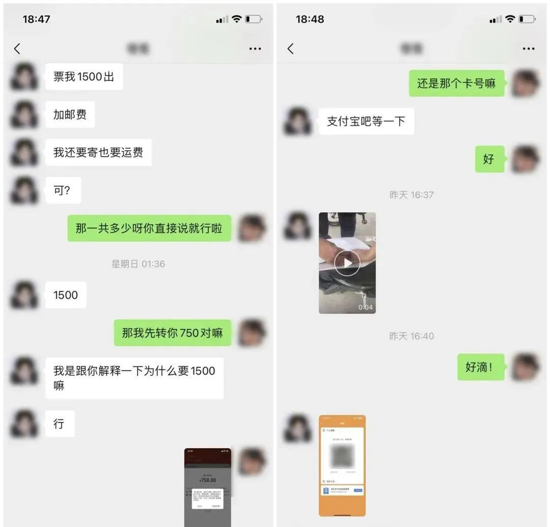 添加对方微信并支付750元定金后,对方还发来了一段快递工作人员将2张门票放进快递文件袋的视频,并称自己不能去现场好遗憾,只求唐女士到了现场能发一段偶像的视频给自己。唐女士觉得自己很幸运,遇到了不加价的好歌友,欣然支付了另外750元尾款,并期待着装有门票的快递能早点收到。