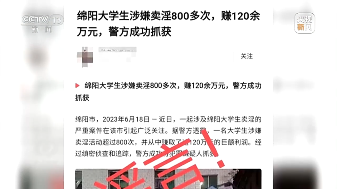 公安部网络安全保卫局二级巡视员 张俊兵:速度方面,网络谣言传播往往体现出来的特点是爆发式的、裂变式的传播,瞬间传遍全网,这是非常突出的特点。在流量经济的驱动下,一些自媒体从业人员造谣传谣的情况非常多,他们往往编造事件,其目的主要还是为了吸粉引流、牟利。