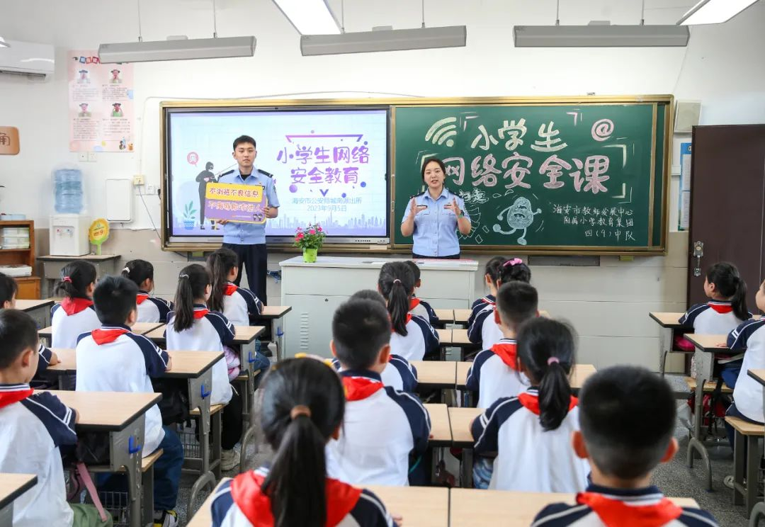 2023年9月5日,江苏省海安市公安局城南派出所民警在给海安市教师发展中心附属小学的学生上网络安全知识课。翟慧勇 摄(人民视觉)