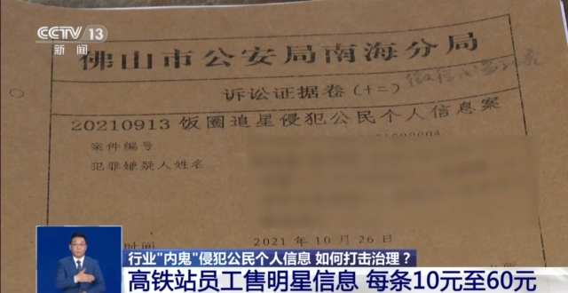 明星高铁出行信息10元一条?身份证号码5元一个?近期,广东省佛山市南海区人民法院通报了一起高铁站员工为赚“快钱”,利用职务便利,有偿代查或出售明星隐私行程的案件,多人获刑。