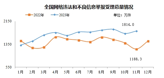 2023年11月全国受理网络违法和不良信息举报1814万件
