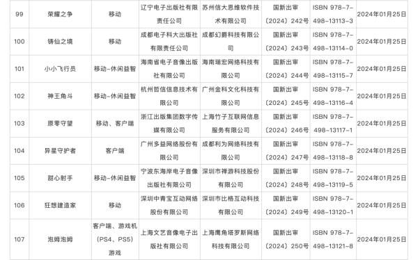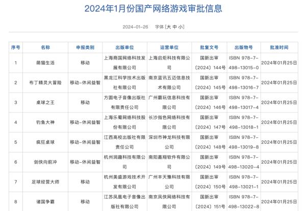26日,国家新闻出版署网站披露2024年1月份国产网络游戏审批信息,共有115款游戏获批。