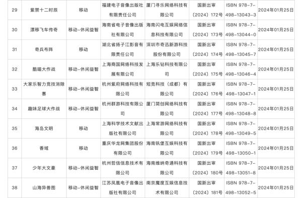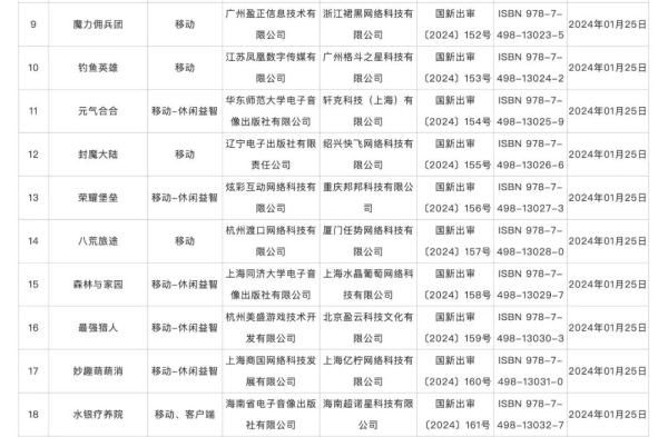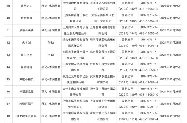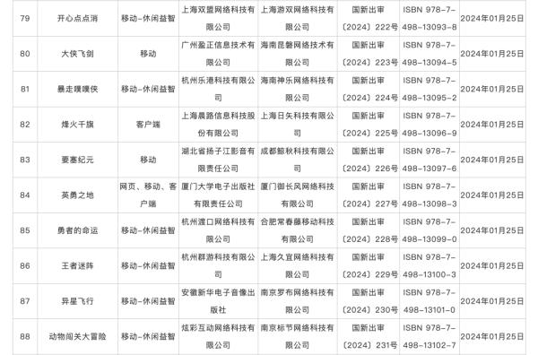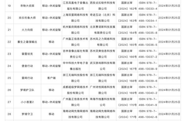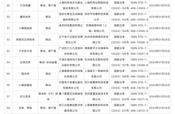 具体来看,1月获批国产网络游戏包括,中青宝的《魔导战争》《全民企业家》《狂想建造家》,三七互娱的《客人请留步》,凤凰传媒的《运动之森》《钓鱼英雄》等。