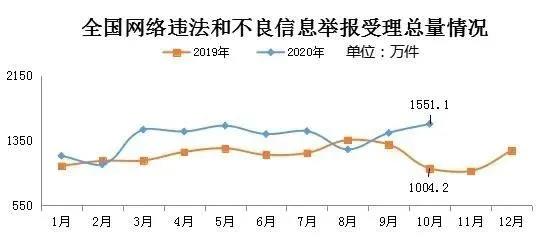 2020年10月全国受理网络违法和不良信息举报1551.1万件