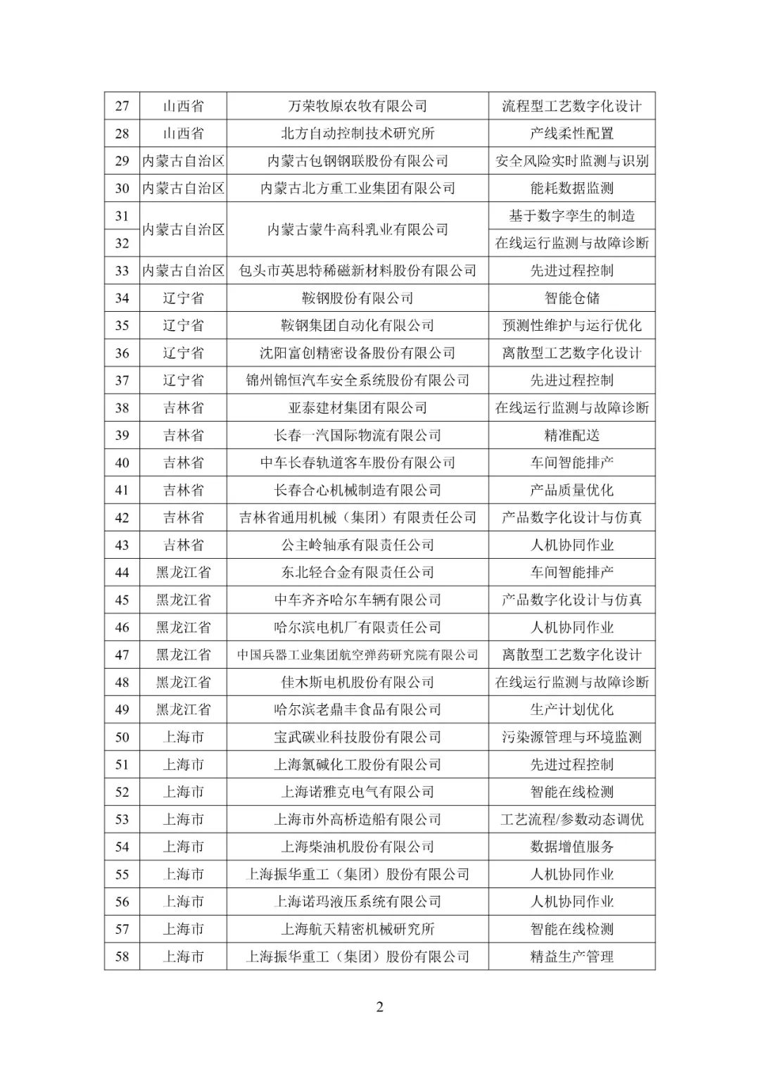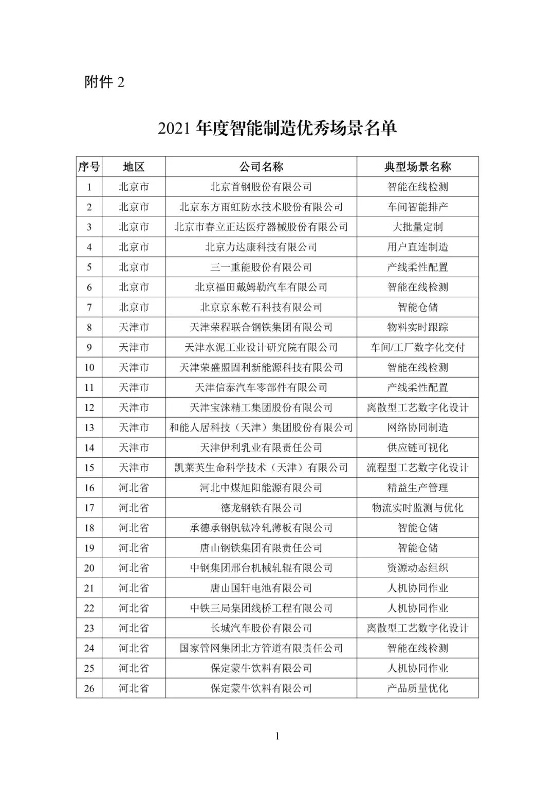 附件:1. 2021年度智能制造示范工厂揭榜单位名单