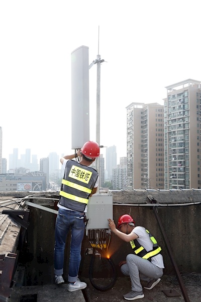 武汉铁塔工作人员正在进行5G基站日常巡检