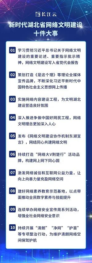 上云、用数、赋智,6000万荆楚人民,正踔厉奋发、笃行不怠,努力建设数字湖北新高地。我们共享数字成果,共建网络文明。
