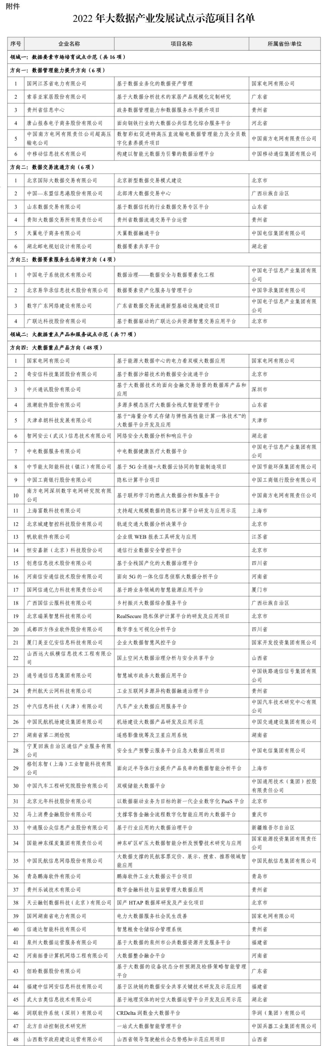 关于公布2022年大数据产业发展试点示范项目名单的通知