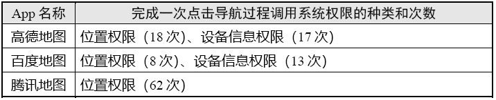 表4 点击导航场景调用系统权限情况