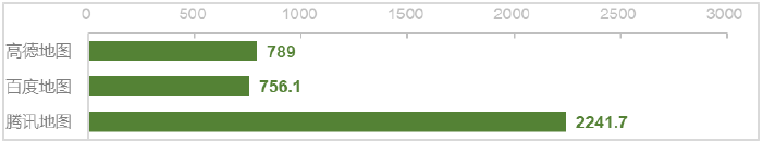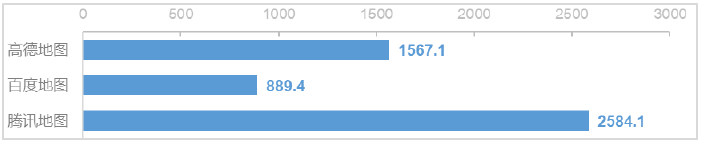 (1)测试发现,3款App在用户通过文字输入方式完成一次地图导航活动(启动App、通过文字输入搜索地点、点击导航)时,上传数据流量平均⁽³⁾最多的为腾讯地图,约为2584KB;平均最少的为百度地图,约为889KB。具体情况如图1。