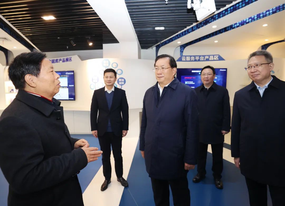 武汉达梦数据库股份有限公司四十年如一日坚持原始创新,形成具有完全自主知识产权的数据库管理系统系列产品,成为国产数据库行业领军企业。王忠林察看产品展示,勉励企业积极对接市场需求,优化商业模式,更大力度拓展市场,加快做大做强。