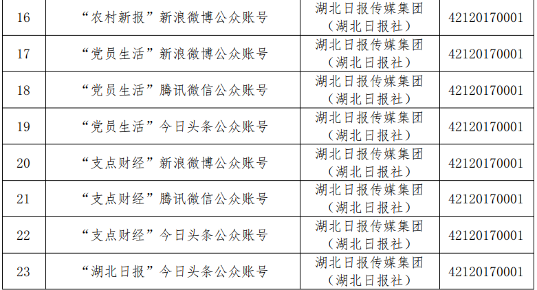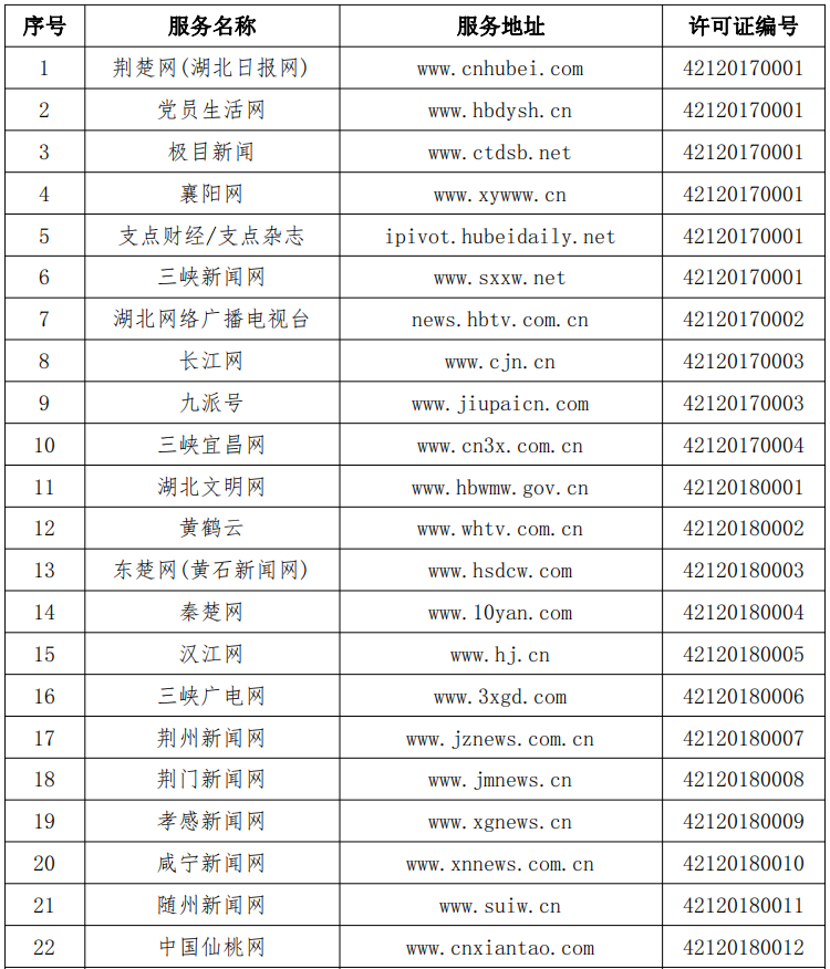 湖北省互联网新闻信息服务单位信息(截至2023年3月31日)