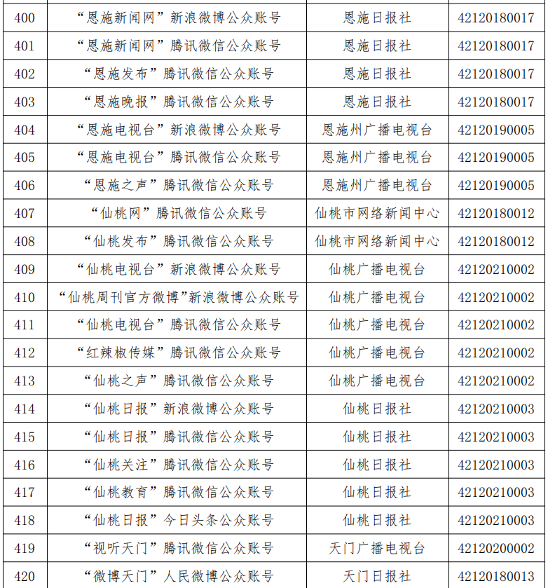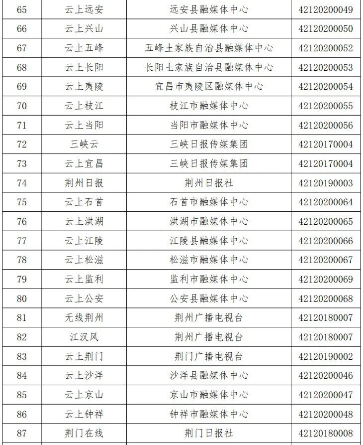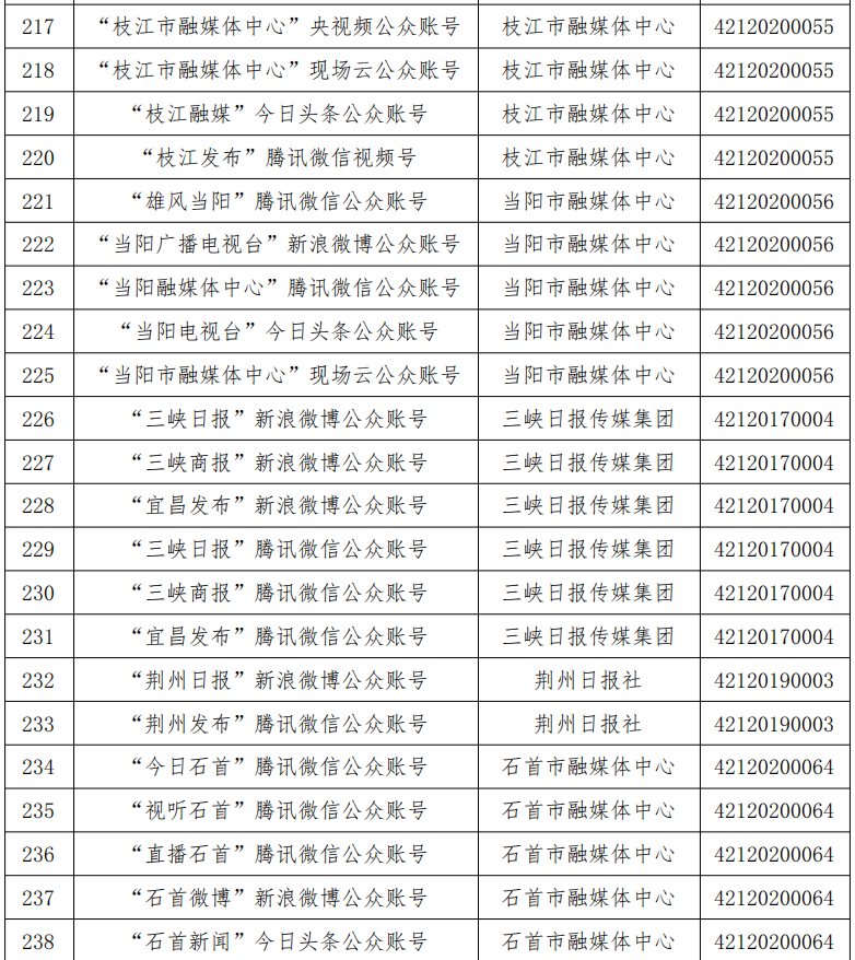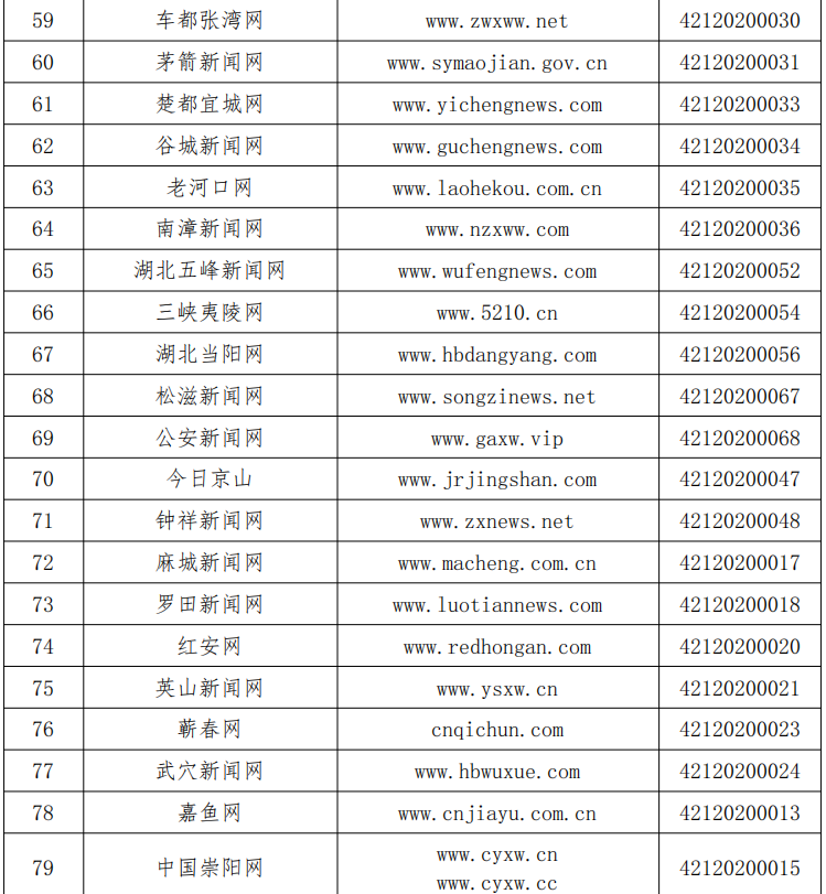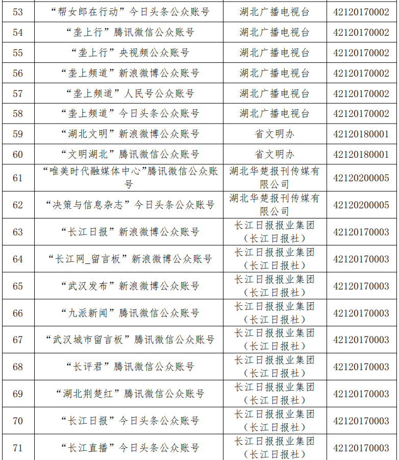 按照国家网信办的统一部署,湖北省网信办依法组织开展了属地互联网新闻信息服务许可证的申请、续办和变更工作,现将已完成申请、续办和变更的111家湖北省互联网新闻信息服务单位取得的相关许可信息予以公开,包括:互联网站94个,应用程序136个,论坛13个,公众账号428个,其他4个,共计675个服务项。