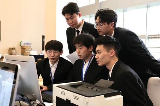 3月31日,张俊逸(前排左二)在第十届中国网络视听大会上担任志愿者。代冉 摄