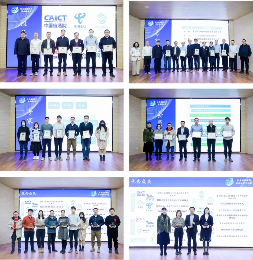 最后,悬镜安全进行“软件供应链安全技术演进”主题演讲。优秀科研成果获奖代表中国信通院、奇安信,先进技术产品获奖代表比瓴科技,优秀治理实践获奖代表浙江移动、腾讯云、中兴通讯就获奖成果进行现场分享,为社区成员开展后续工作提供了新思路。