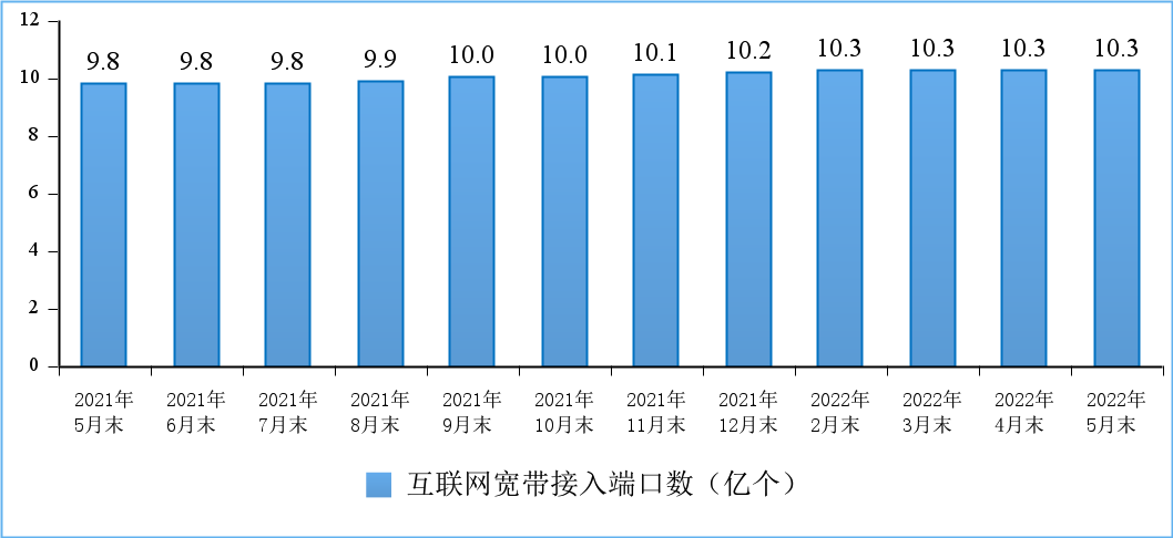10G PON端口数超千万。截至5月末,全国互联网宽带接入端口数量达10.3亿个,比上年末净增1238万个。其中,光纤接入(FTTH/O)端口达到9.79亿个,比上年末净增1931万个,占比由上年末的94.3%提升到95.1%。截至5月末,具备千兆网络服务能力的10G PON端口数达1039万个,比上年末净增253.3万个。