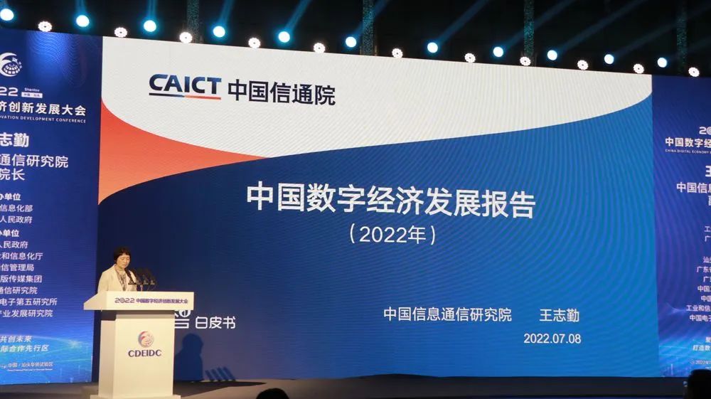 7月8日,广东汕头,中国信息通信研究院副院长王志勤发布《中国数字经济发展报告(2022)》。新华社记者洪泽华摄
