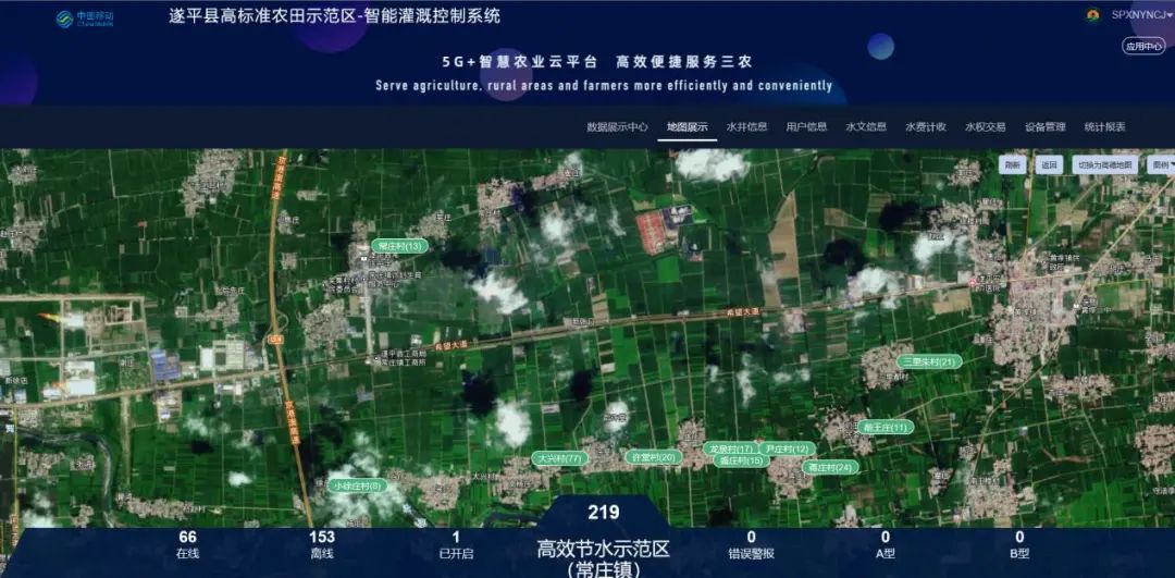 在常庄镇建设的5G+智慧农业云平台控制室里,电子屏占据了整面墙。屏幕上,农田地理信息、智能灌溉控制、农业植保和气象监测、环境灾情预警等高标准农田信息一目了然,乡村两级管理中心和农户手机客户端均可获得相关数据。