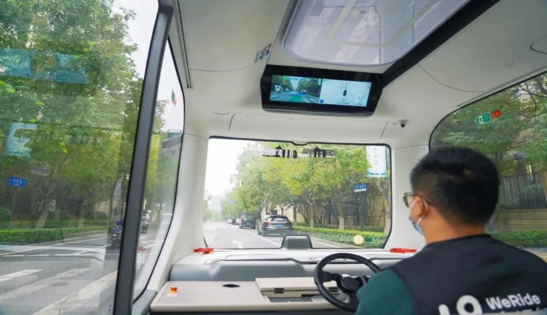坐在自动驾驶公交巴士里的安全员,全程只需关注突发情况,为行车安全保驾护航。