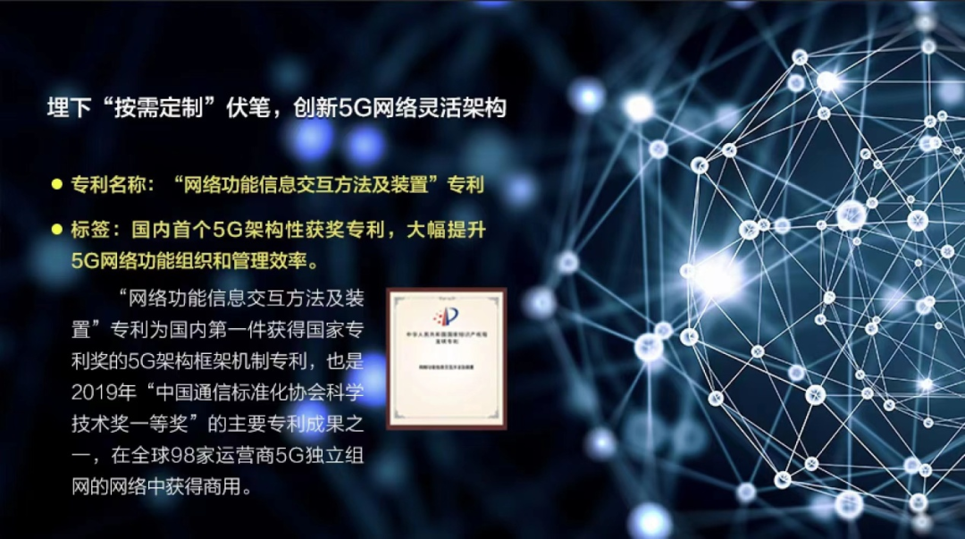 该专利创新性提出了5G服务化新架构中网络功能、服务的交互方法,通过由“点”到“网”的网络服务自组织机制,实现了移动网络能力的弹性加卸载,改变了传统网元连接固化的配置模式,大幅提升了5G网络功能组织和管理效率,有力支撑了我国建成全球最早、规模最大、技术最先进的5G独立组网网络,并在全球98家运营商5G独立组网的网络中获得商用。