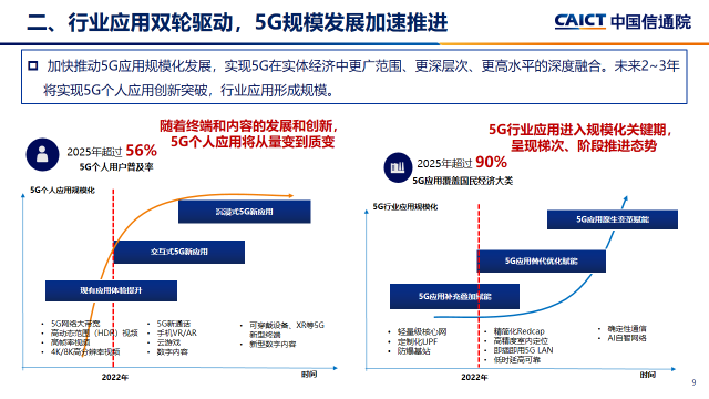 二、个人行业应用双轮驱动,5G规模化发展加速推进