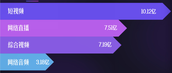 网络视听用户:最近半年综合视频、短视频、网络音频和网络直播用户的并集。