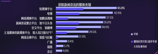其中,除娱乐休闲外,看新闻、学知识成为用户重要需求。短视频平台已经成为网民获取新闻资讯的首要渠道,成为舆论宣传主阵地。