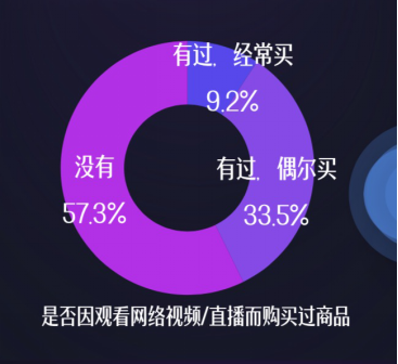 与2020年相比,直播间带货能力显著提升。有42.7%的用户在最近半年内因观看网络视频或网络直播而购买过商品,相比2020年提升27个百分点。直播成为日常生活快消品营销重要渠道。